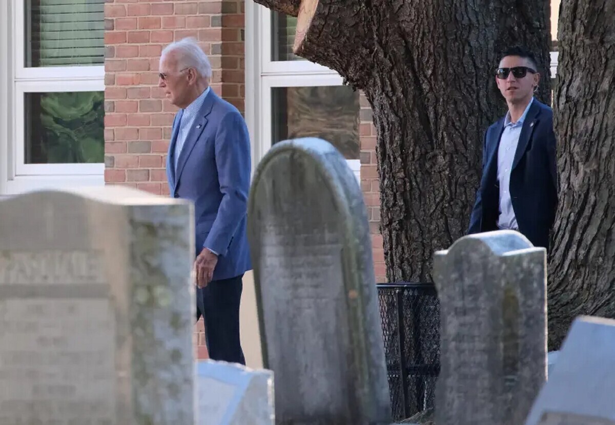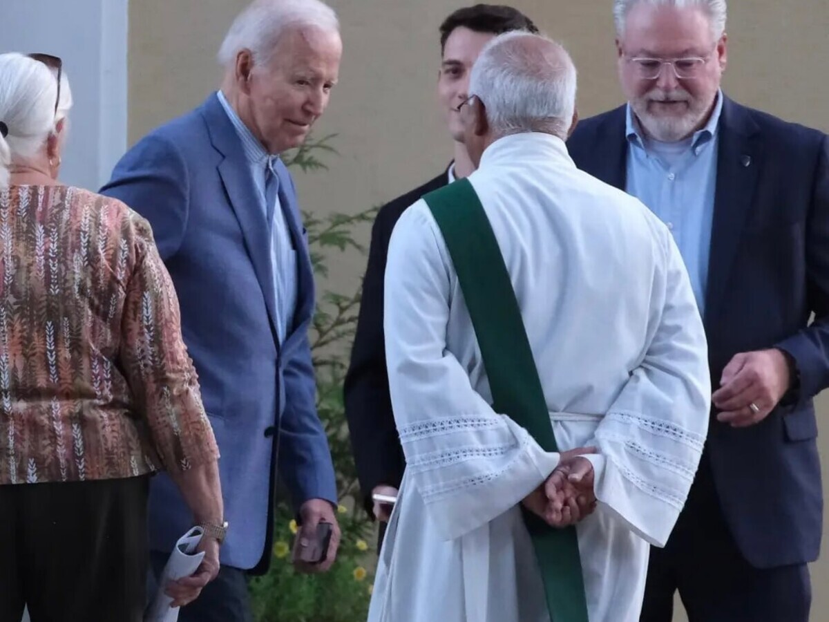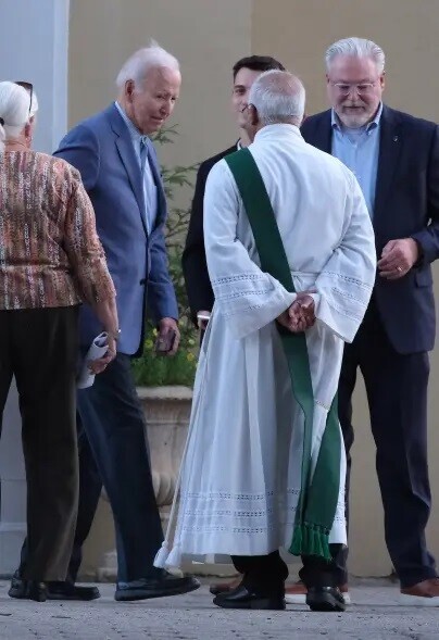 Байден, одягнений у темний костюм, близько десяти хвилин спілкувався з парафіянами біля церкви після 50-хвилинної меси. На цей раз його супроводжувала не дружина Джилл Байден.
