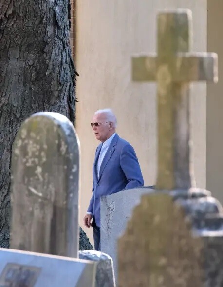 82-річного Байдена сфотографували після годинної служби, коли він залишав храм. На його обличчі все ще був помітний великий шрам над правим оком – наслідок недавньої операції з видалення раку шкіри.