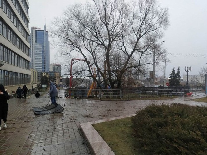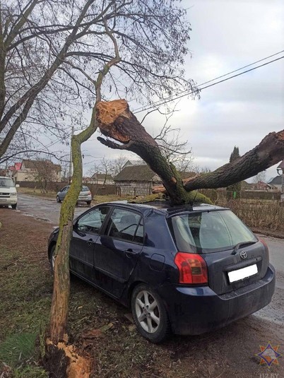 У столиці Білорусі Мінську внаслідок ураганного вітру впало понад 900 дерев. А на центральній площі у місті Несвіж поблизу Мінська вітром здуло головну новорічну ялинку.