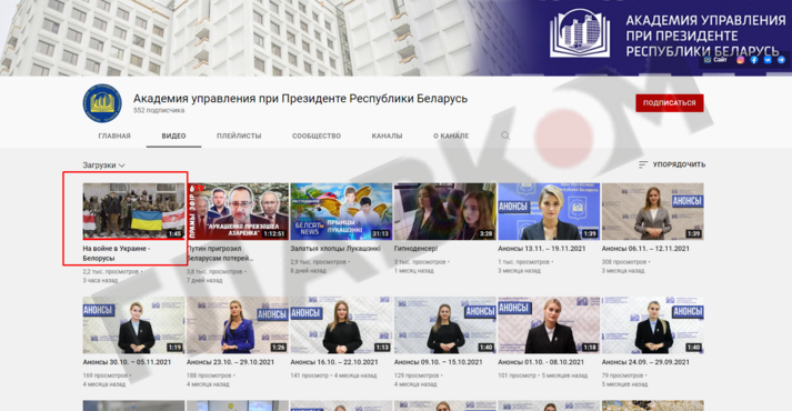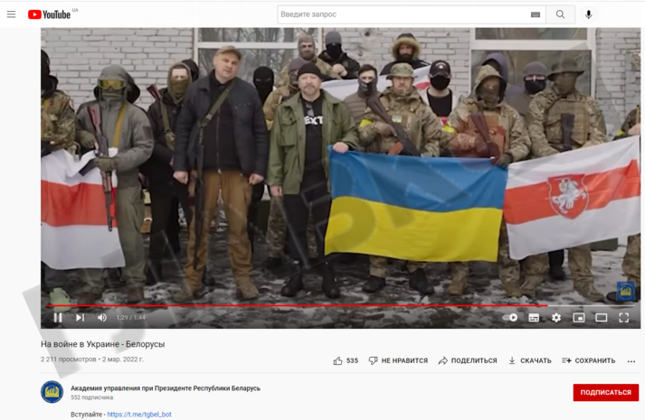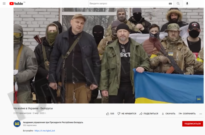 Зокрема на каналі Академії управління при президентові Республіки Білорусь розміщене відео з промовою легенди збройних сил Білорусі, підполковник ВДВ запасу Валерія Сахащика. Він закликав білоруських військових не виконувати злочинний наказ і не вступати у війну з Україною.