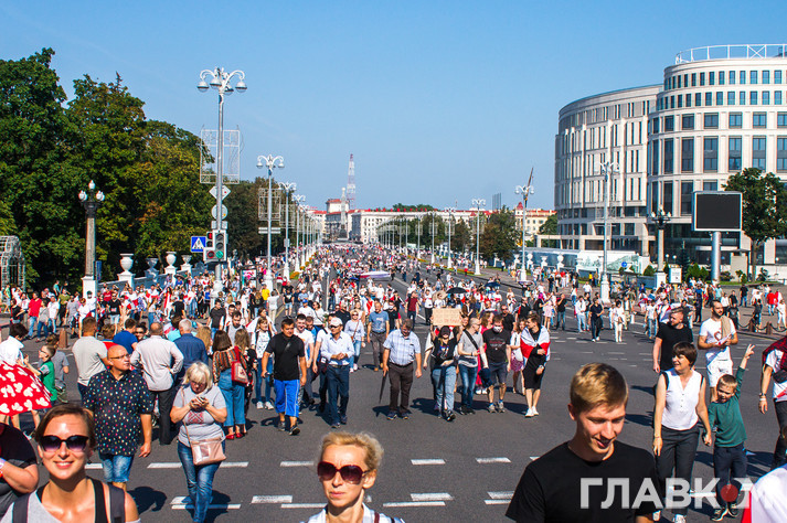 Горожане шли колонной, которая растянулась по двум проспектам примерно на пять километров. Люди в её голове встретились с колючей проволокой, ОМОНом, солдатами-срочниками и спецтехникой, включая водомёты.