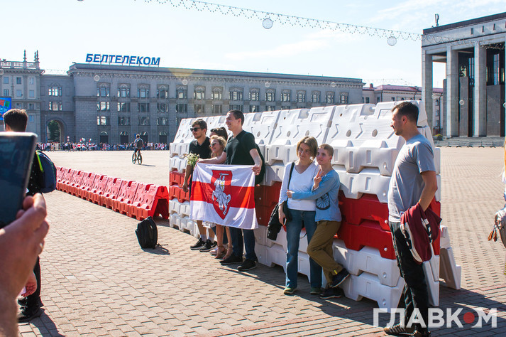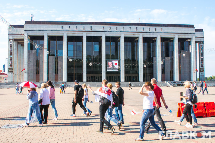 Люди шли по проезжей части прямо ко Дворцу Независимости, чтобы поздравить с днём рождения человека, которого не считают своим президентом – Александра Лукашенко.