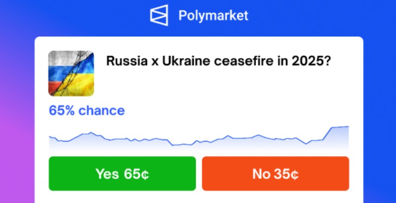 Оцінка букмекерами шансів на припинення вогню в Україні в 2025 році становить 66%. Це випливає з даних онлайн-платформи Polymarket. При цьому 1 січня цього року показник досягав пікової позначки 71%.