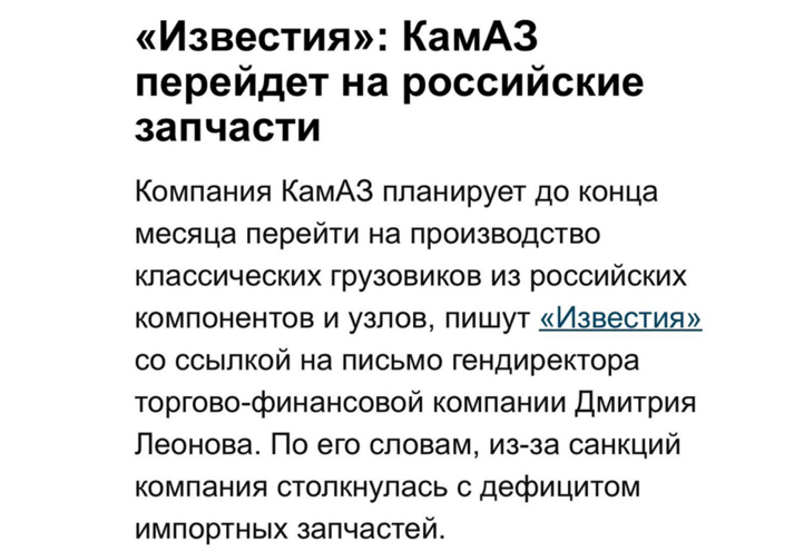 Вмирає і невійськова промисловість. Автомобільні та машинобудівні заводи зупиняються через брак деталей та складників. Вони звільняють своїх працівників. Звичайно, деякі намагаються знайти рішення і будують нові машини «з російських складників». Звучить добре, але не працює.