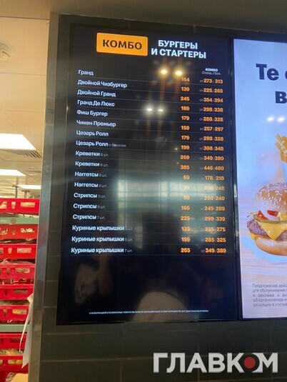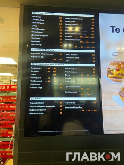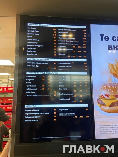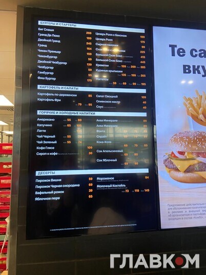 Ціни McDonald's/«Вкусно и точка» (в рублях):