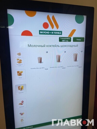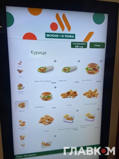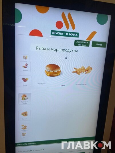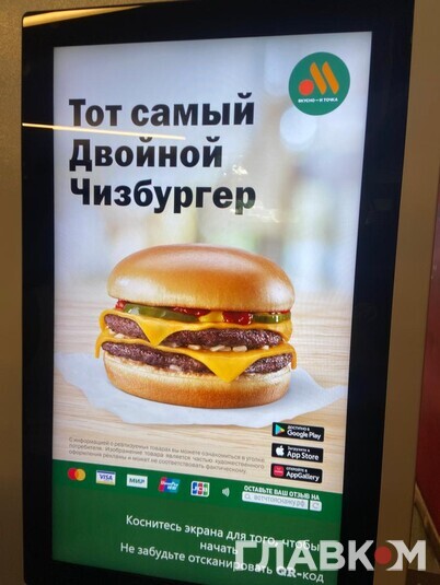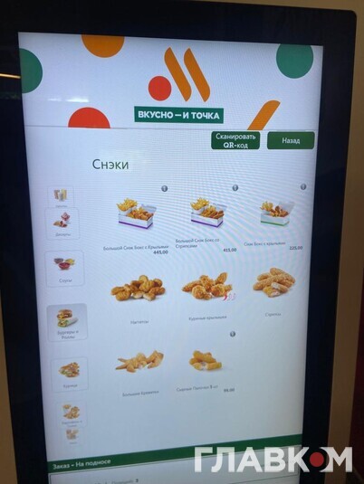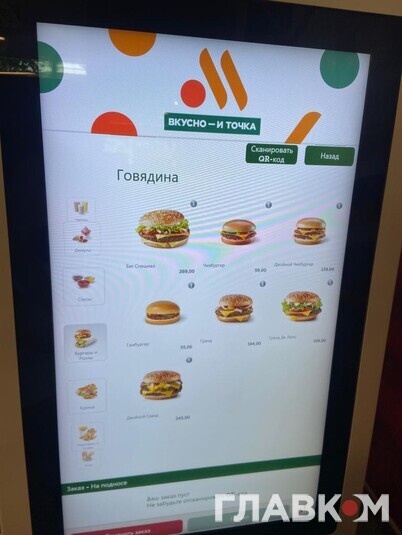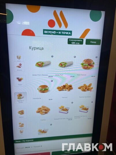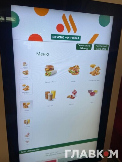 Після офіційного виходу McDonald's Росія відкрила власну мережу закладів швидкого харчування під несподівано назвою «Вкусно и точка». Та чи популярна вона серед простого люду? Читачі «Главкому» у Росії побували у ресторані на Маршала Жукова в Москві. Тут є дитяча кімната та сервіс МакАвто, утім, людей зовсім небагато. Ціни у «Вкусно и точка» вищі, ніж були у McDonald's, однак не дуже значно.