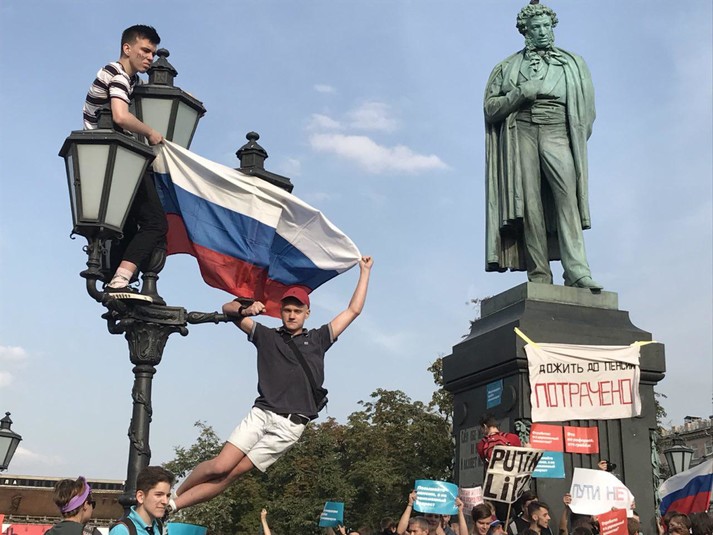 У містах Росії проходять акції протесту проти підвищення пенсійного віку. Демонстрації відбуваються в неділю, 9 вересня, тобто в єдиний день голосування, коли в РФ обирають губернаторів, мерів та депутатів різних рівнів.