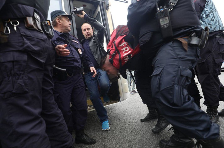 Кореспондент «Медіазони» в Петербурзі передає, що на площі Леніна людей затримують колонами. На очах кореспондента кілька десятків протестувальників відправили в автозак. У площі як мінімум три автозаки, повністю заповнених затриманими.