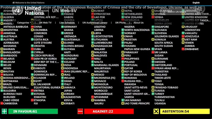 Підтримали документ усі демократичні країни, серед країн, які висловилися проти, – традиційно Росія, Вірменія, Білорусь, Китай, Куба, Іран, М’янма, Сирія, Венесуела, Зімбабве.