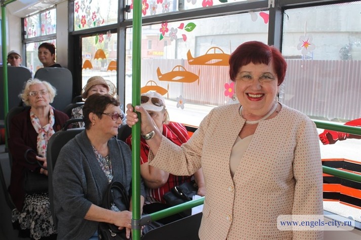 Під час поїздки старший науковий співробітник Енгельського краєзнавчого музею Людмила Асоскова розповіла пасажирам про життя Енгельса під час Другої світової війни, внесок жителів міста в наближення Перемоги, героїв - земляків. Друга частина маршруту була музичною - представники старшого покоління виконали пісні військових років.