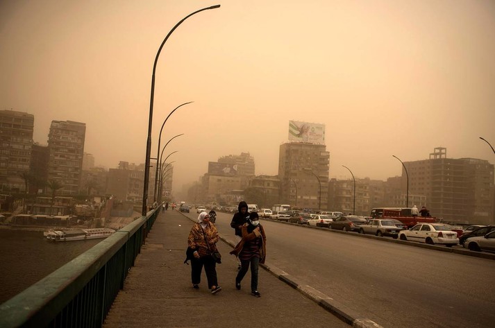 Небо у Каїрі через велику кількість піску в повітрі змінило колір на помаранчевий
