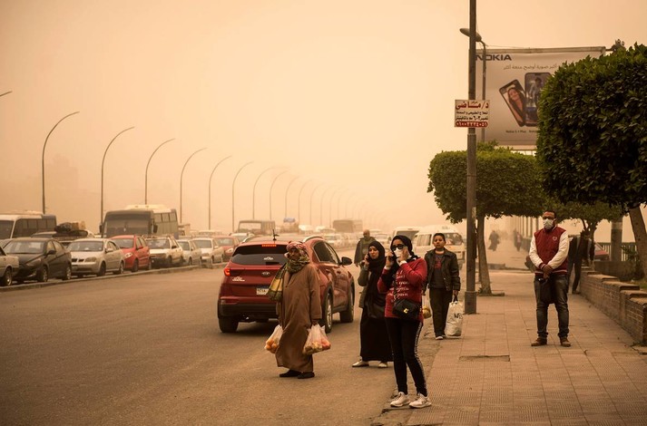 На півночі країни сильні вітри й низька температура повітря. У водах обох морів — Середземному та Червоному — призупинили морське сполучення. Небо у Каїрі через велику кількість піску в повітрі змінило колір на помаранчевий.
