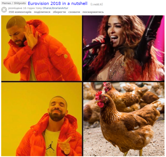 Користувачі розважального онлайнового сервісу reddit свої враження від виступів учасників висловили за допомогою жартів та мемів.