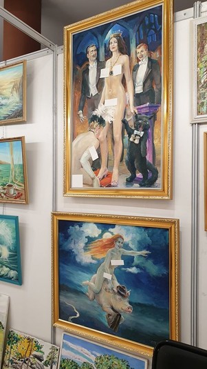 Картини з оголеними жінками заклеїли стікерами на виставці живопису в російському місті