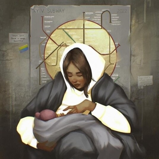 Жінка з Києва Тетяна Близняк, яка годує свою дитину в метро – тримісячну доньку Марічку, через бомбардування ЗС РФ, яку зняв угорський журналіст Андраш Фьольдеш, стала прототипом ікони, що з'явилася в храмі Неаполя. Про це повідомив пастор Павло Левушкан.