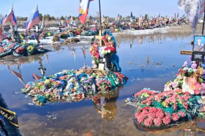 У місті Троїцьк Челябінської області Росії затопило алею поховань російських військових, які брали участь у війні проти України. Про це повідомляє «Главком» з посиланням на російські ЗМІ.