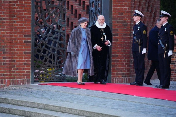 Спочатку 81-річна королева з членами королівської сім'ї відвідала усипальницю данських королів у соборі Роскілле. Там вона поклала вінки на могилу отця Фредеріка IX та його матері королеви Інгріди.