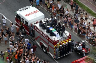 Чорну труну огорнули бразильським прапором та провезли вулицями міста на пожежній машині, а потім пронесли повз будинок його 100-річної матері Селести.
