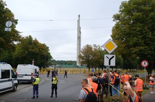 Напередодні початку демонтажу пам'ятника, 22 серпня, приблизно 50 людей протестували проти знесення радянського пам'ятника у парку Перемоги. Поліція затримала сімох людей.