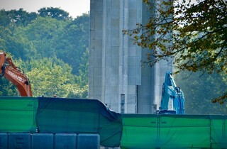 Як відомо, знесення всіх елементів архітектурного ансамблю меморіалу зайняло три дні. У вівторок, 23 серпня, було знесено групу скульптур, що зображують радянських воїнів, а в середу, 24 серпня, – скульптуру «Батьківщина-мати».
