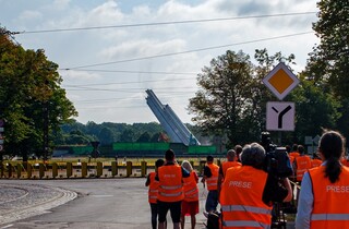 Демонтаж 79-метрової стели тривав приблизно сім годин, падіння викликало гуркіт та сильний сплеск води у басейні. Падіння обеліска спостерігачі зустріли оплесками.