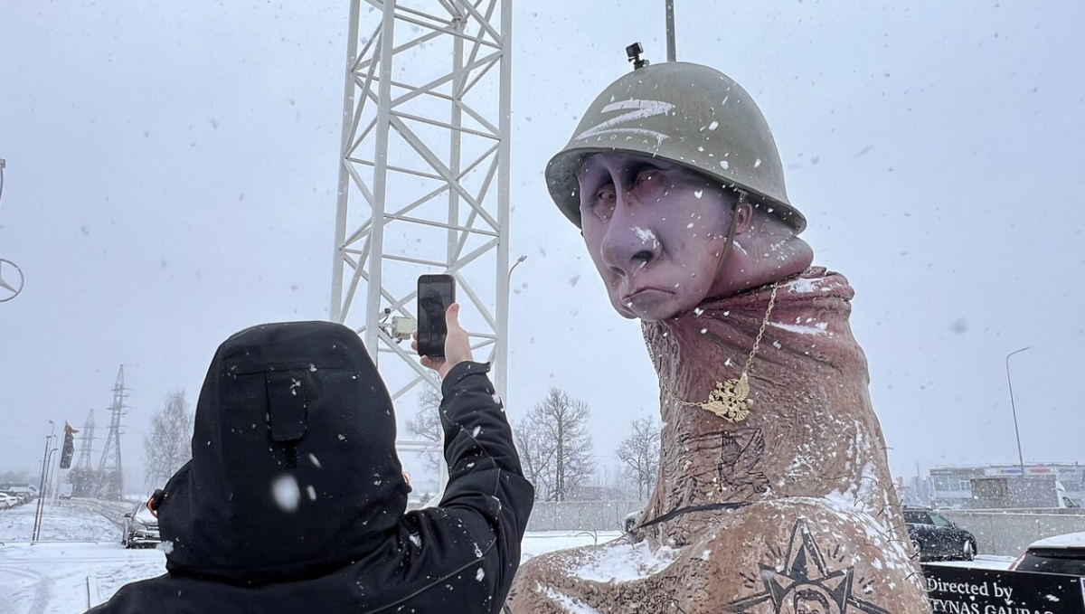 Скульптура символічно зображує президента Росії Володимира Путіна у карикатурній формі