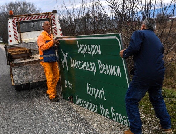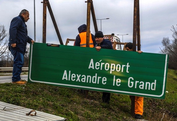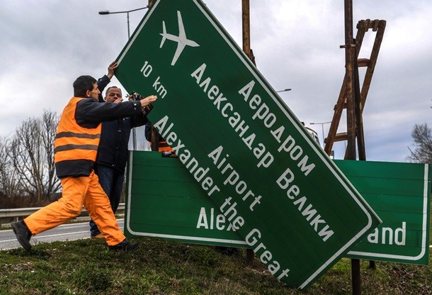У Македонії зняли покажчики з ім'ям Олександра Македонського з головного аеропорту і ключової автомагістралі і приступили до демонтажу статуй, які можна розцінити як експансіоністські стосовно Греції.