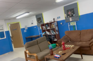 У бомбосховищі зроблені помітки світловідбивною фарбою, аби було видно у темряві, де туалети і вихід. У приміщенні є дивани, лежаки й мікрохвильова – тобто все для комфортного тривалого перебування у ньому людей.