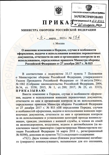 Згідно наказу міністра оборони РФ, тепер родичі вбитих в Україні військовослужбовців отримали можливість безплатно приїхати на упізнання і назад. Відповідний наказ за підписом Сергія Шойгу оприлюднила розвідка Міноборони України.