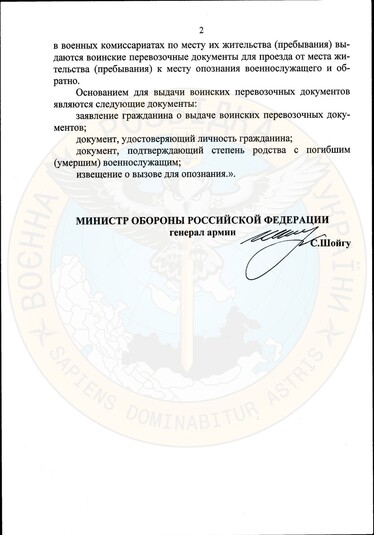 Саме так виглядає нова форма заохочення для контрактників, які виявляють бажання взяти участь у війні: «Двом членам сім’ї (близьким родичам) загиблого (померлого) військовослужбовця, викликаним для його впізнання, у військових комісаріатах за місцем їхнього проживання (перебування) видаються воїнські перевізні документи для проїзду від місця проживання до місця упізнання військовослужбовця і назад».