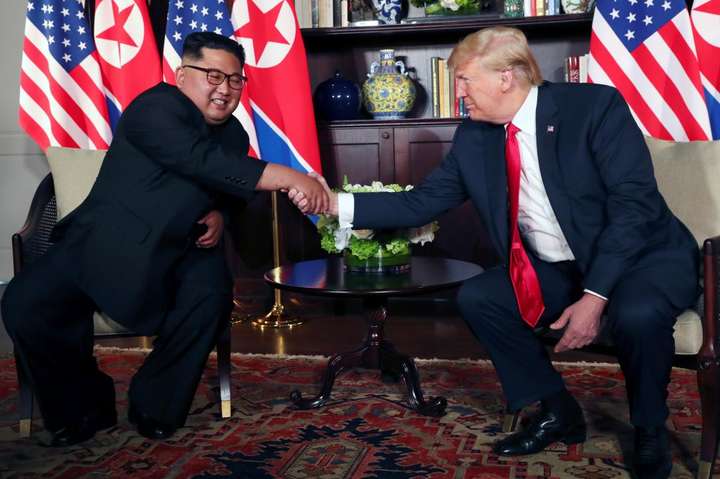 І вже сьогодні, 12 червня, лідер КНДР Кім Чен Ин і президент США Дональд Трамп обмінялися рукостисканням на тлі прапорів. Після чого усамітнилися: разом із ними залишились тільки перекладачі, а згодом приєдналися високопоставлені учасники обох делегацій. Розмова тривала 50 хв.