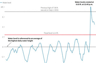 Фотографії з регіону навколо виходу на сушу «Ідалії» показали, як океанські води омивають автомагістралі та околиці, затоплені великою повінню опівдні. Відключення електроенергії були масовими.