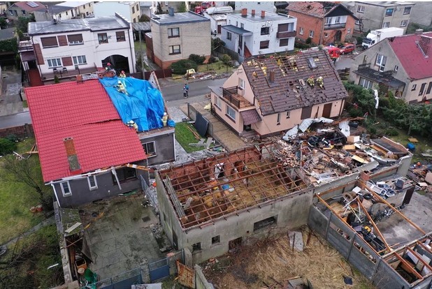 За словами рятувальників, в населеному пункті Добжиця Великопольського воєводства (захід країни) сильний вітер пошкодив дахи близько 30 будинків.