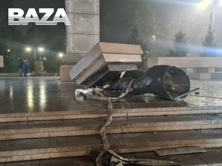 У Казахстані мітингувальники повалили пам'ятник, встановлений на честь першого президента країни Нурсултана Назарбаєва. Першою «жертвою» став монумент у місті Талдикорган. Відповідні фото оприлюднив телеграм-канал Baza.
