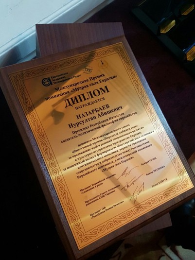 За даними видання, премію присуджено у номінації «За внесок у просування ідеї миру і співробітництва на Євразійському континенті» - «Мудра сила» - «Мудра сила Євразії».
