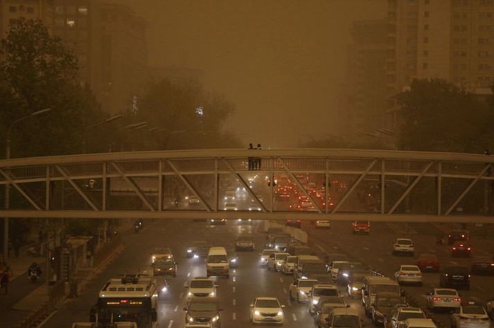 «Небо над Пекіном пожовкло, а забруднення повітря різко зросло, коли гігантська хмара частинок піску і пилу пронеслася по місту під сильним вітром з півночі Китаю», – йдеться у повідомленні.