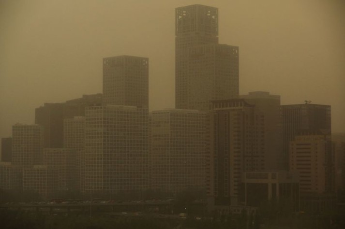 У столиці Китаю Пекіні небо пожовкло від забруднення частинками піску, принесеними бурею з півночі країни.