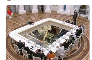 Завдяки столу відстань між кремлівським диктатором та його оточенням становить близько шести метрів