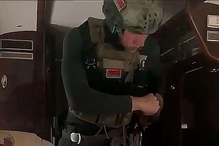 На кадрах видно, як Лукашенко-старший оглядає ситуацію навколо своєї резиденції з вертольота. На задньому фоні видно Колю, який поправляє військове спорядження і потім виходить з кадру.