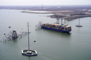 Morning aftermath of the tragic Baltimore bridge collapse.