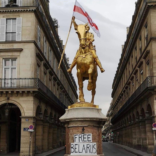 Вочевидь, місцеві мешканці в такий спосіб вирішили підтримати білоруських активістів, які третій день постіль протестують проти результатів нещодавно проведених президентських виборів та свавілля влади. Пам'ятник Жанни Д'арк в Парижі зараз виглядає ось так – пише білоруське видання TUT.BY у своєму Twitter.