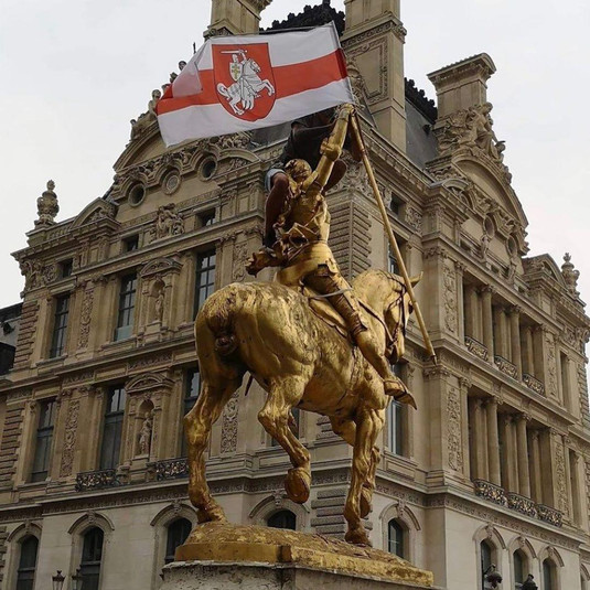 Сьогодні, 12 серпня, в інтернеті з’явилися світлини французької незламної героїні Жанни Д’Арк, яка тримає в руках білоруський прапор.