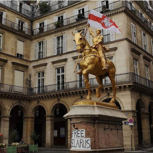 Пам’ятник Жанні Д’Арк у Парижі прикрасив білоруський прапор