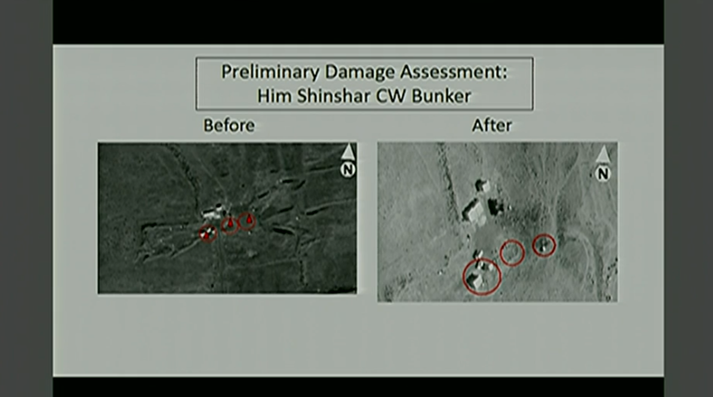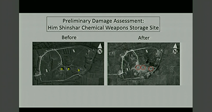 За словами Маккензі, всі ракети влучили по запланованих цілях. Він додав, що сирійський режим розгорнув близько 40 установок з ракетами поверхня-повітря. Більшість їх запусків сталася після влучання останньої запущеної американської ракети.