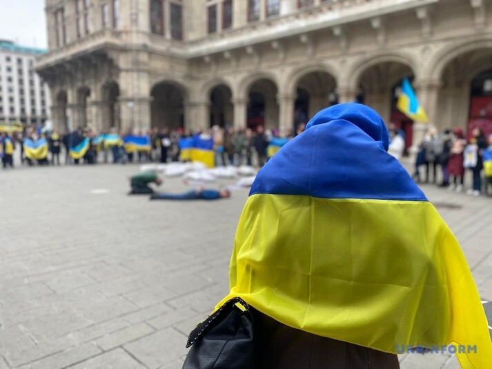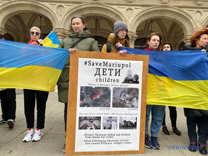 У суботу, 9 квітня, біля будівлі державної опери Відня відбулася акція в пам'ять про жертв розбомбленого росіянами драматичного театру у Маріуполі. Про це повідомляє Укрінформ.