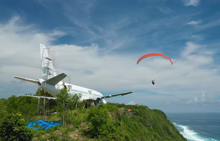 Ідея створення незвичайного місця відпочинку належить російському підприємцю Феліксу Дьоміну. Для цього він купив авіалайнер збанкрутілої місцевої авіакомпанії Mandala Airlines. Його спочатку розібрали, перевезли до берега Індійського океану, а потім зібрали на 150-метровій скелі. Планування цієї операції зайняло два місяці, потім ще п’ять днів – перевезення різних частин літака.