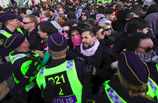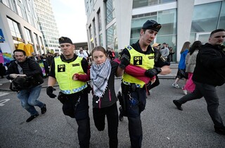 Greta Thunberg detained by the police after joining a large group of anti-Israel protesters clashing with the Swedish police.