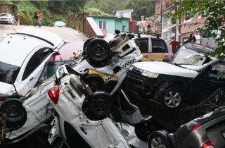 На опублікованих кадрах видно гори потрощених автомобілів, які знесло водою.