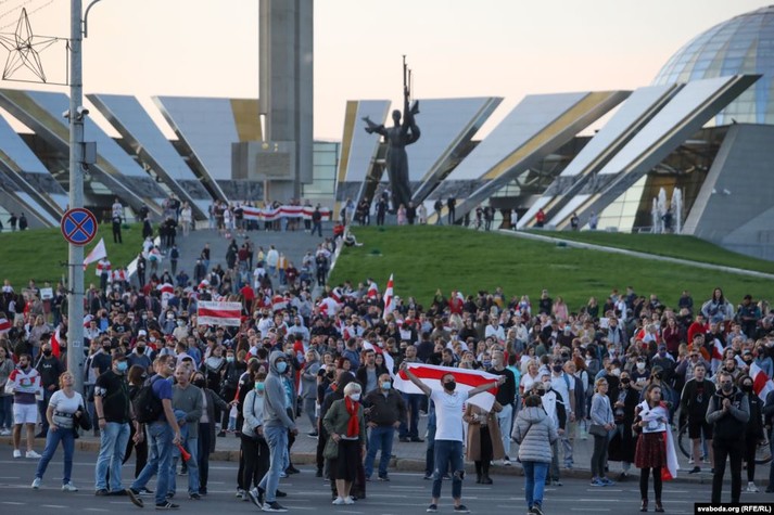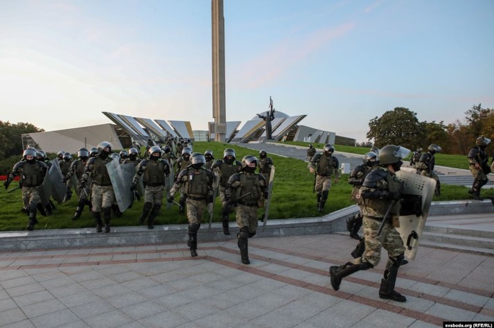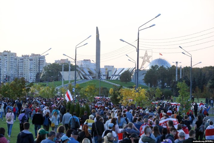 За даними «Інтерфаксу», на площі перед входом до музею біля стели «Мінськ місто-герой» перебувають близько півтора-двох тисяч людей. До стели стягнули військових. Вони відтіснили людей на проїжджу частину проспекту Переможців.