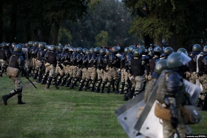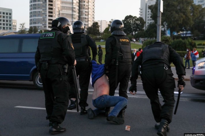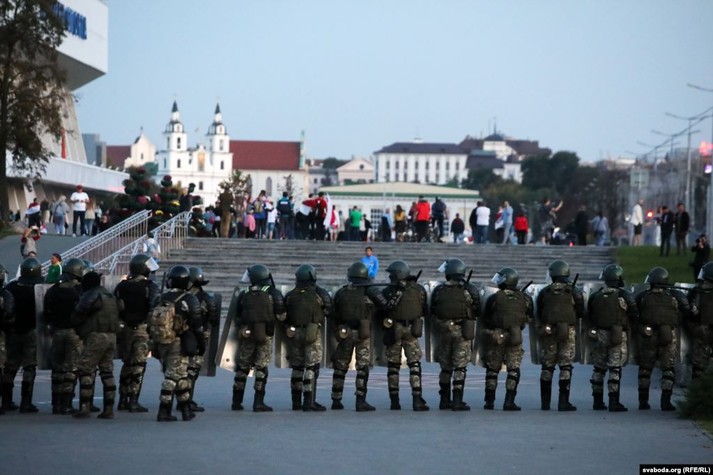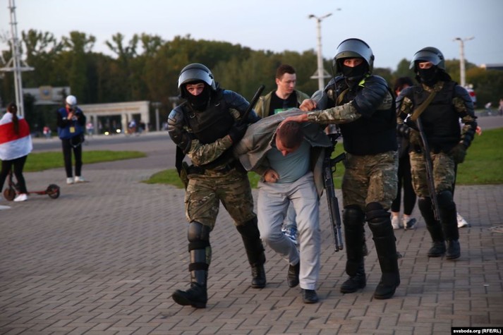 На проспект вийшли люди в чорному камуфляжі і почали затримувати протестувальників, також передає білоруська служба Радіо Свобода.